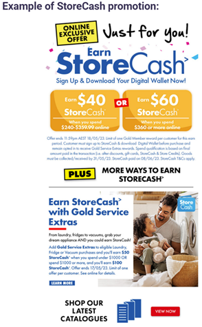 - StoreCash was provided through a digital wallet on a smart device, such as a smart phone. The consumer could redeem the StoreCash via The Good Guys’ website, by telephone or at The Good Guys’ physical stores, subject to the credit-expiry condition.